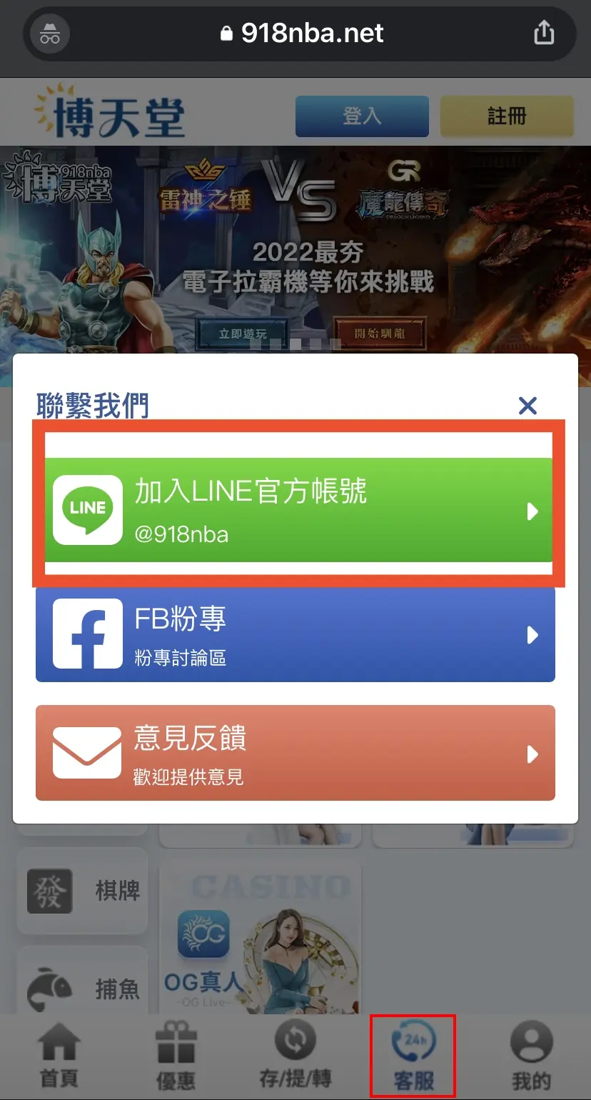步驟6:於下方選單點選客服,加入線上賭博app官方line帳號