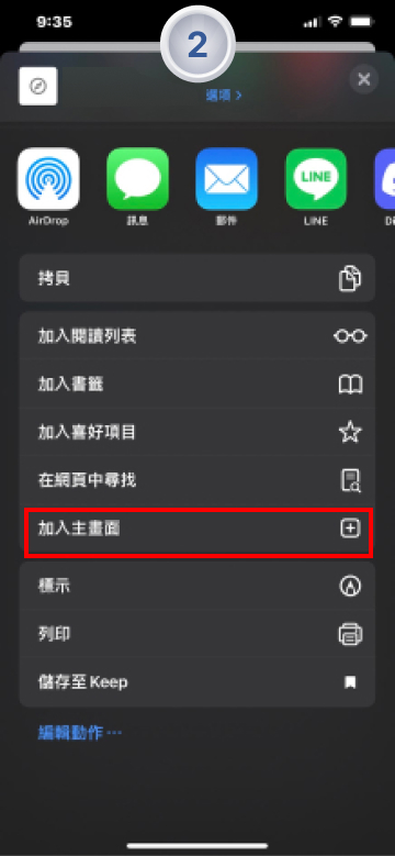 點擊開啟後向下滑,找到加入主畫面後點擊