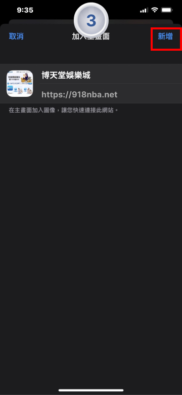 點擊新增,即可增加線上賭博app官網至手機主頁面