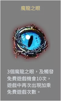 根據上一段的故事情節,在遊戲內也以魔龍之眼、魔法書、銀幣、魔法藥水等奇幻風格之物品為主要道具,並以3×5的老虎機轉軸進行遊戲,玩家必須透過不停的運作轉軸操控冰龍和火龍來試著取得龍之心以解救人類並贏得彩金!