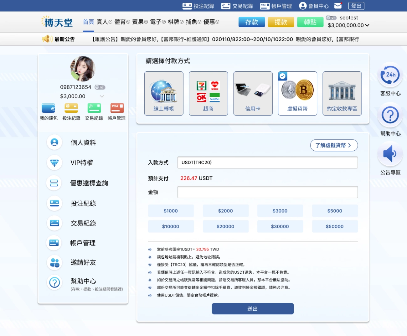 3.轉入成功後系統將於3-8分鐘自動入台幣點數至您的主錢包